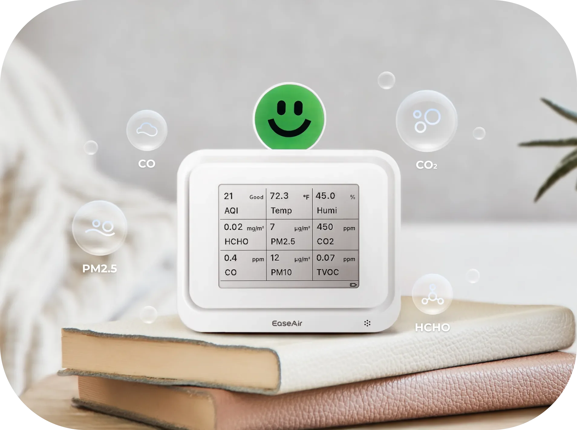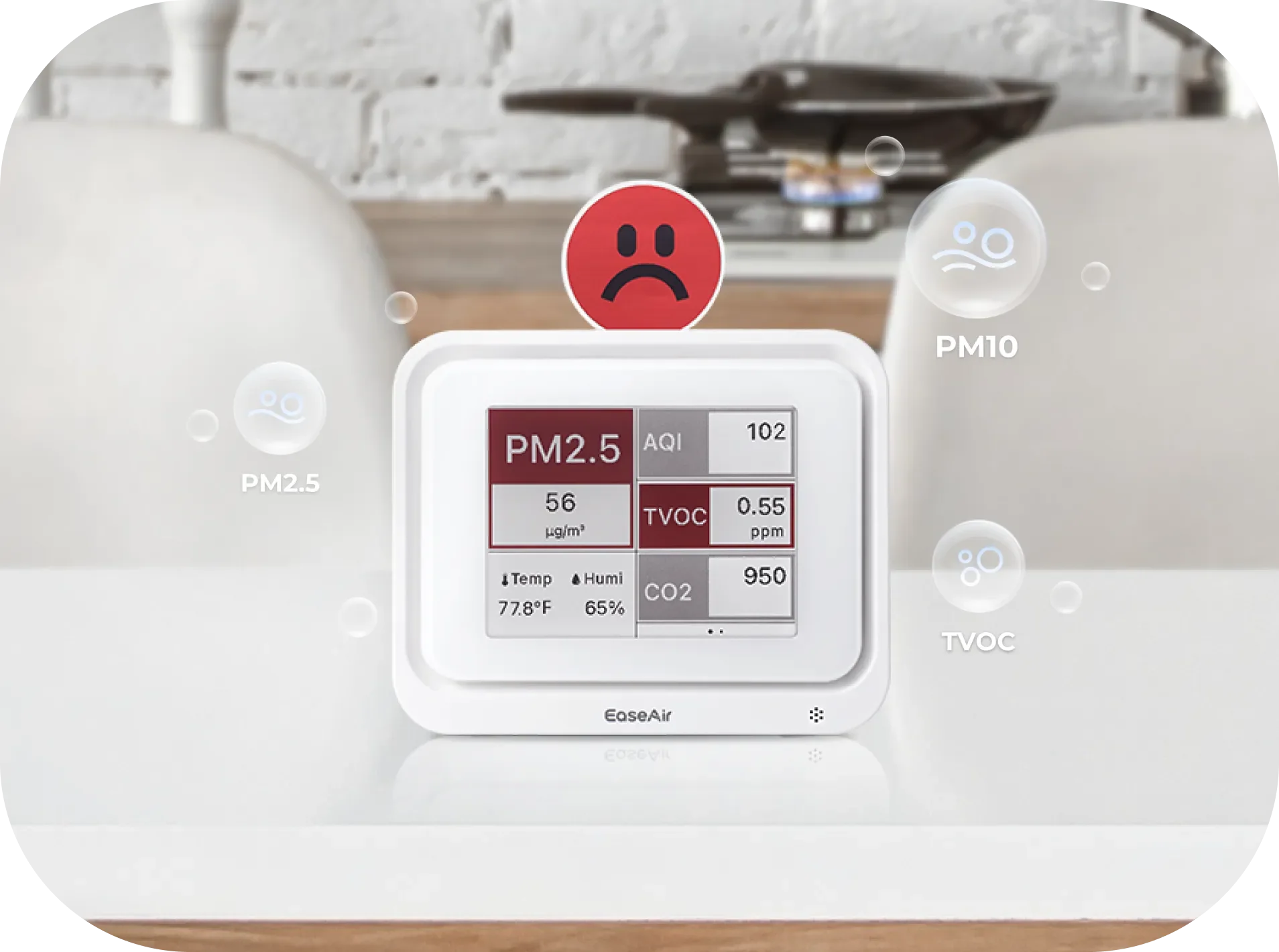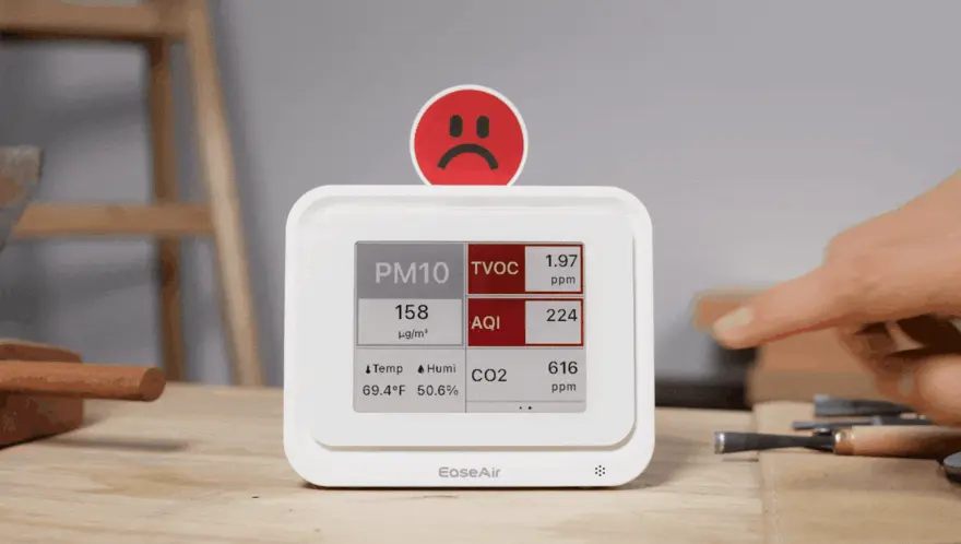 The AQI (Air Quality Index) does not include measurements for CO₂, formaldehyde, or TVOCs. It primarily reflects pollutants like PM2.5, PM10, ozone, and nitrogen dioxide. A "Good" AQI means those specific pollutants are at safe levels, but it doesn’t represent the complete air quality. High CO₂ levels can trigger a red alert on the EaseAir display, even if the AQI appears good. This is why EaseAir gives you a more complete picture of your air quality beyond just AQI.